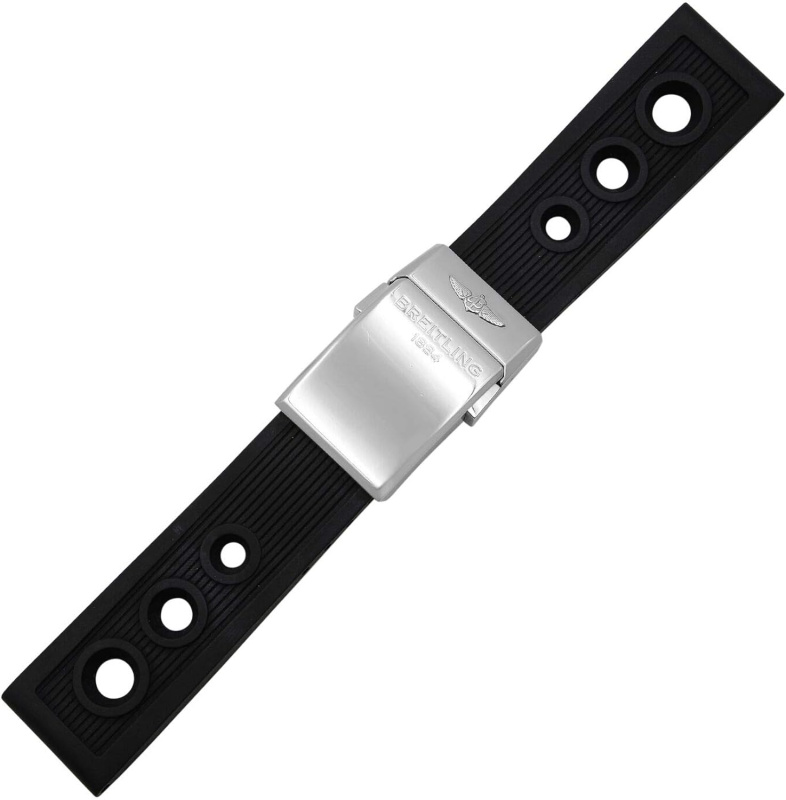 Ремень Breitling 200S, из каучука, черный, размер 22/20 мм, под клипсу