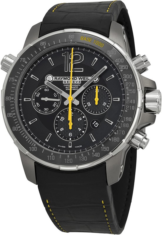 Ремешок из каучука, черный, желтые стежки, 23мм, без застежки, принт имитация аллигатора для часов Raymond Weil Nabucco 7850