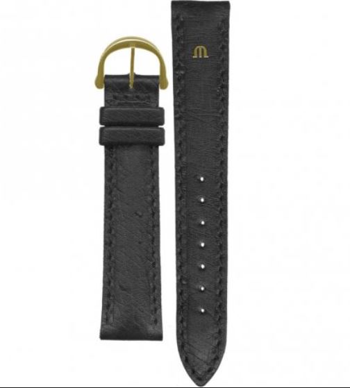 Ремень Maurice Lacroix 655-000007, из кожи страуса, черный, размер 17/16 мм